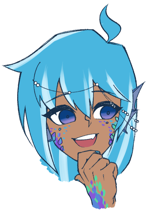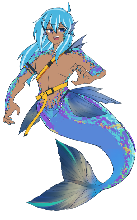 The more androgynous side of Toby. They prefer neutral pronouns and terms but will be okay with whatever the person(or being) is more comfortable with. They definitely have a more laid back, shy nature as they have to be more cautious of the dangers in the ocean. Their memories of origin are hazy but they do remember being raised by a shark family in the Bermuda Triangle! Often spending their days lazing about the reefs collecting odd human trinkets. Their love for math originated from finding an rusted abacus in an abandoned ship! Now rumours have been spreading about Toby's true form. Something beyond just a person with a fish tail, even... monstrous.